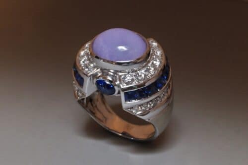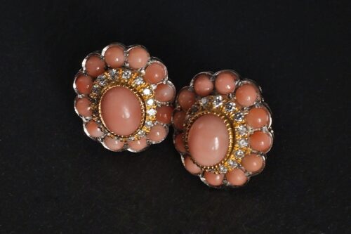 Grapefruit Pink Sapphire Diamond and Moonstone Ring