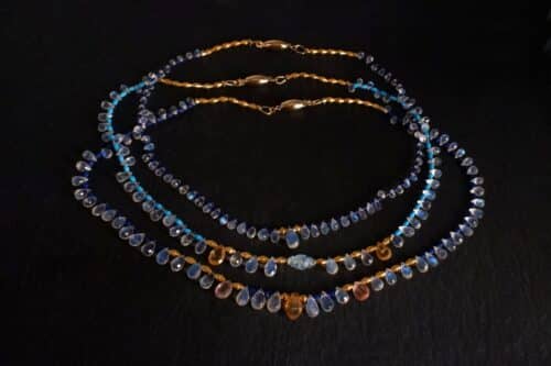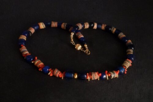 Medieval Moonstone Lapis Turquoise Bead Necklace 18k