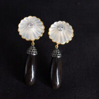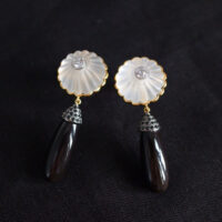 The orange stone is a spessartite garnet, known in the trade as mandarin garnet.